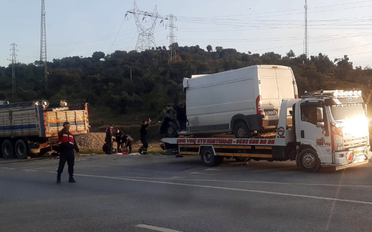 Sağlık ekipleri, hafif ticari araç sürücüsü Pazar ile aynı araçtaki yolcu Hüseyin Akkurt'un olay yerinde yaşamını yitirdiğini belirledi.