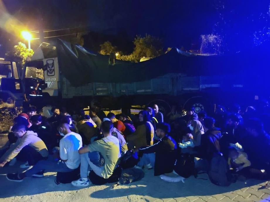 Ormanlık alanda bekleyen 35 ASG... plakalı kamyonda yapılan aramada 86 Afgan, 8 İran ve 2 Filistin uyrukla göçmen İtalya ve Yunanistan’a kaçırılmak üzere beklenirken bulundu.
