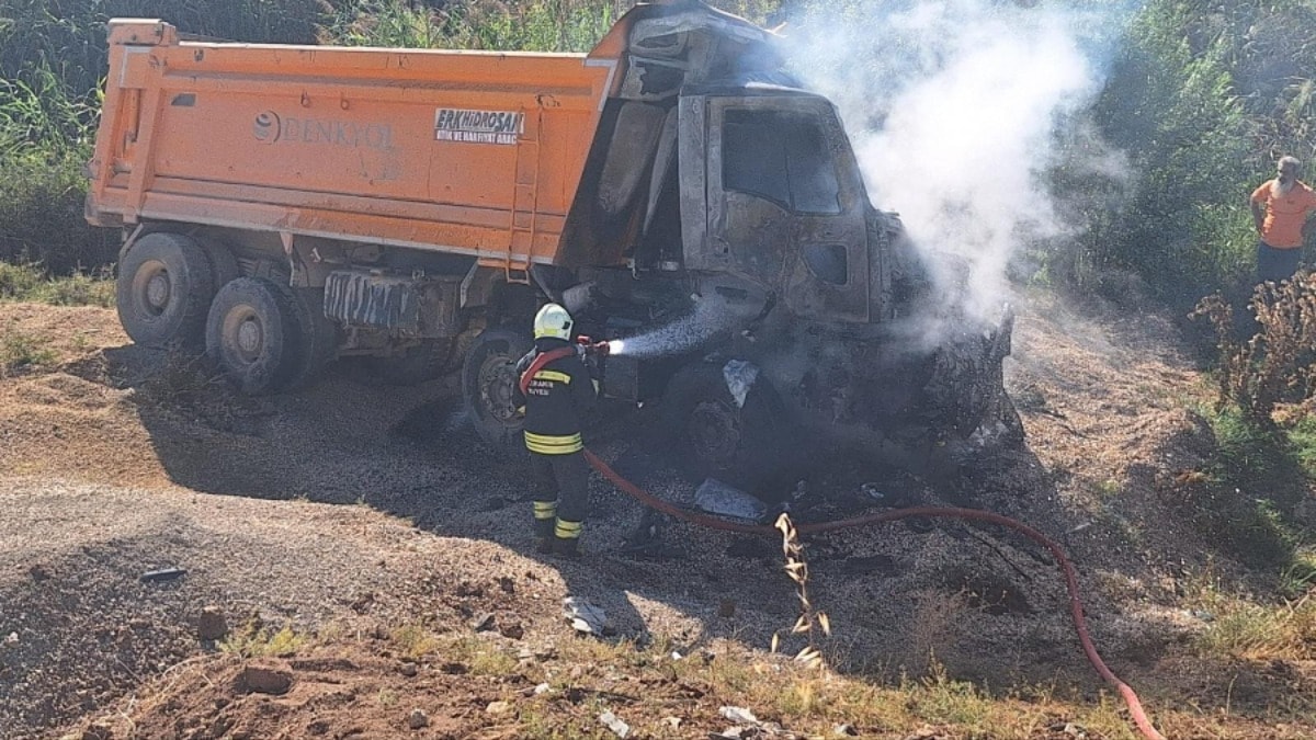 İtfaiye ekipleri kamyondaki yangını söndürdü. Sağlık ekiplerinin yaptığı kontrolde, kamyonda sıkışan sürücünün yanarak yaşamını yitirdiği belirlendi.