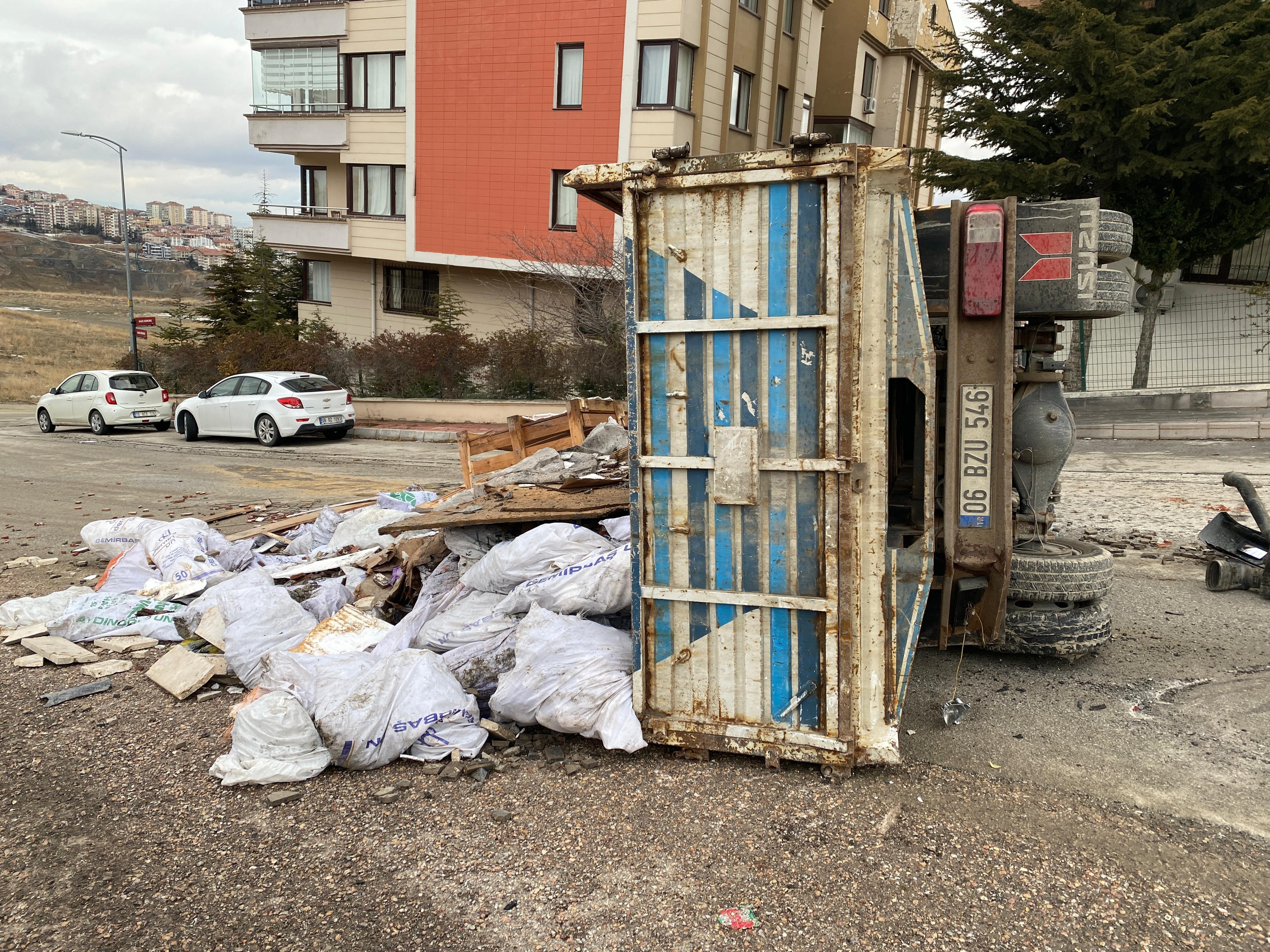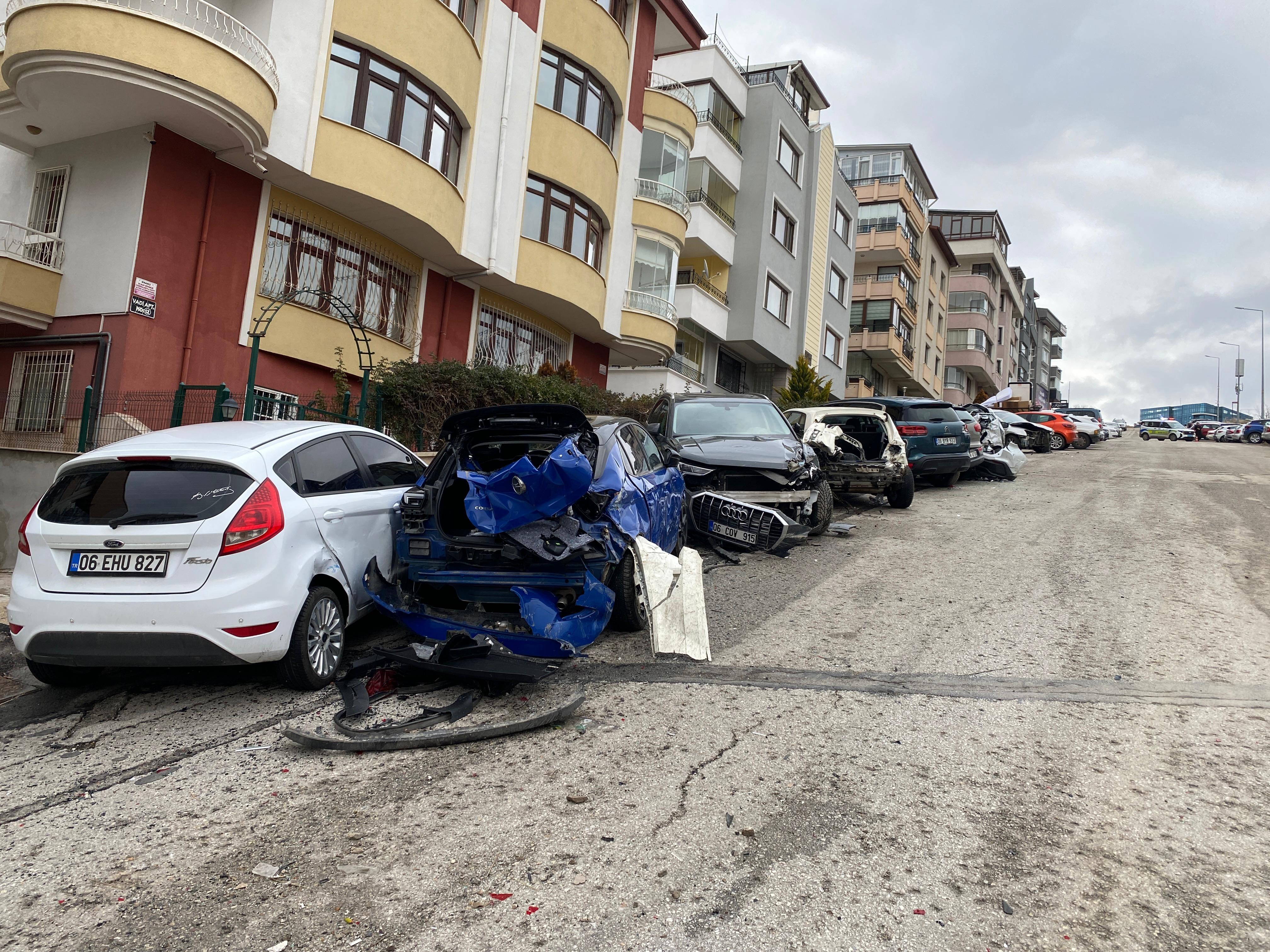 Kaza, dün saat 14.00 sıralarında Çankaya ilçesi Yukarı Dikmen Mahallesi 660'ıncı Sokak'ta meydana geldi. A.K. idaresindeki 06 BZU 546 plakalı hafriyat yüklü kamyonet, yokuş çıkarken kayarak sokakta park halindeki 11 araca çarptı, ardından devrildi.