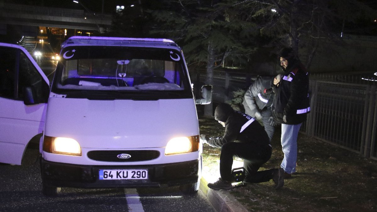 Kamyonetin çeşitli yerlerine mermilerin isabet ettiğini tespit eden polis ekipleri, şüpheli ya da şüphelilerin yakalanması için çalışma başlattı. (AA)