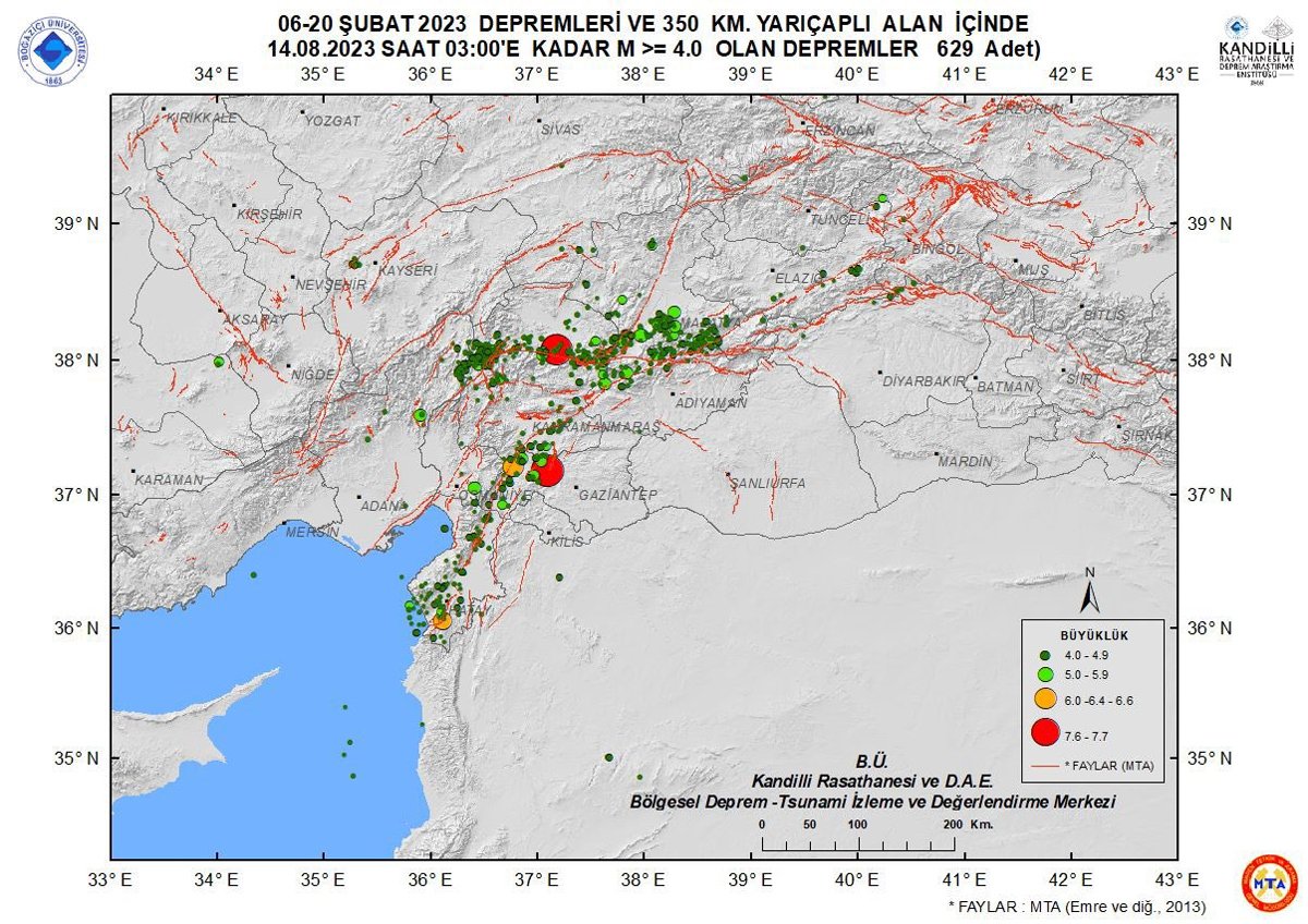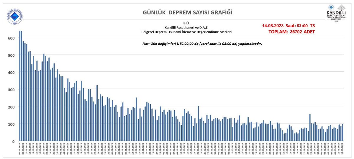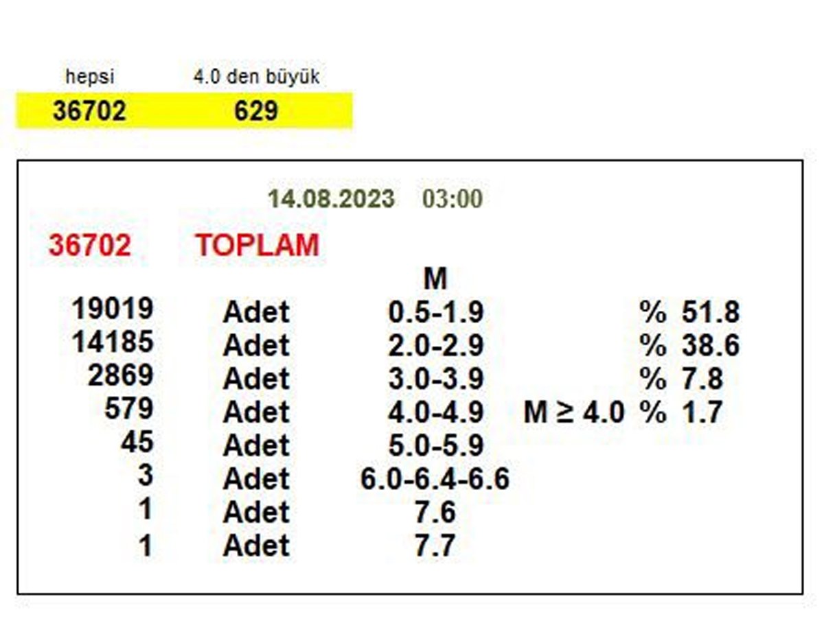 Özener, mesajında "6 Şubat 2023 depremlerinin ardından, 14 Ağustos 2023 saat 03:00 itibarıyla bölgede toplam 36702 adet deprem çözümü yapılmıştır. Bölgede günde ortalama 80 deprem olmaya devam ediyor" ifadelerini kullandı.