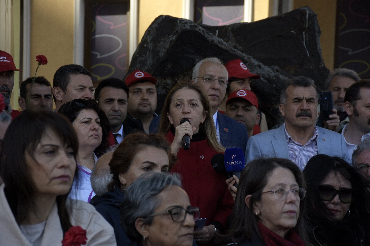 Burada konuşan DİSK Başkanı Arzu Çerkezoğlu, her yıl burada olmanın ve 1977'de hayatlarını kaybedenleri anmanın sadece bir anıyı ve geleneği yaşatmak olmadığını belirterek, "Bu aynı zamanda geleceğe dair, aynı zamanda ülkemizin aydınlık geleceğini kurmaya dair kararlılığımız ve irademizi ortaya koyması açısından da önemli." diye konuştu.