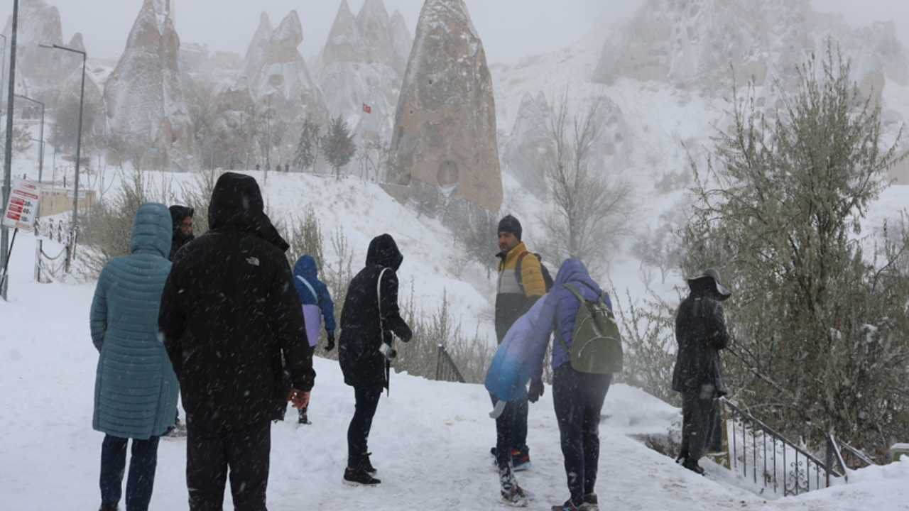 Hava sıcaklıklarının mevsim normallerinin altına düştüğü Kapadokya bölgesinde etkili olan fırtına ve sağanak yerini kar yağışına bıraktı. Bölgedeki peribacaları beyaza büründü. Göreme başta olmak üzere Ürgüp, Zelve ve Uçhisar gibi bölgeleri ziyaret eden turistler, kara ilgi gösterdi.