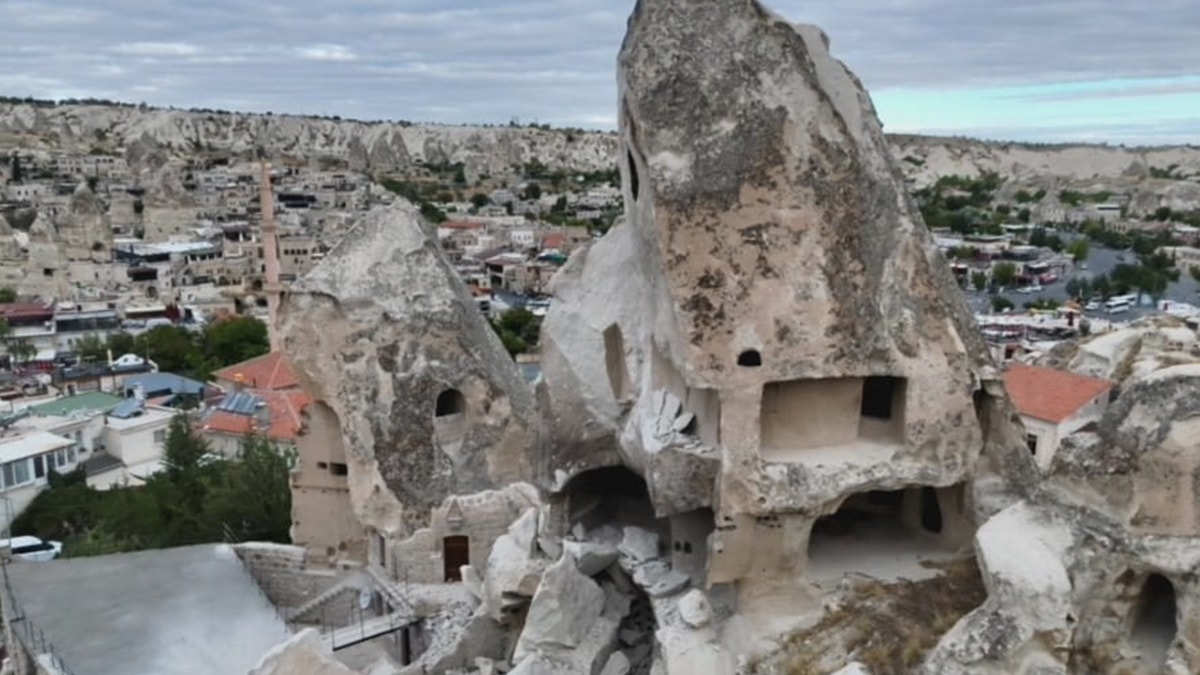 Öte yandan yıkılan peribacasının karşısında bulunan iş yerine yansıyan güvenlik kamerası görüntülerinde, peribacasının yıkılmasıyla birlikte çevreyi toz bulutunun kapladığı görüldü.