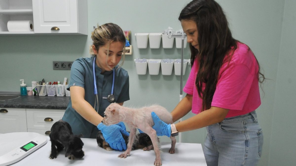 "Çok kötü durumdalar. Bir tanesi çok ciddi derecede uyuz. Öbürlerinin tüy ve deri sağlığı tamamen bozulmuş. 5 yavrumuzda ise inanılmaz bir pire enfastasyonu vardı. Her yerleri simsiyahtı. Hemen iç-dışlarını yaptık taradık. Var olanları biraz döktüler, rahatladılar. Bundan sonraki süreçlerde tek tek kontrollerini yapmaya devam edeceğiz. İlk geldiklerinde sadece acil müdahale yaptık. Minimum 14 gün karantina süreci devam edecek. Ama uyuzlu hastalarımız için bu süre uzayabilir. Asıl ciddi durumda olanlar o 3 yavrumuz. Büyük ihtimalle leishmania olabilirler. Emin değiliz, test yapacağız. Bu hastalık bir kan paraziti. Kötü bakım koşullarında olan hayvanlarda, o mu değil mi bakacağız. Doğru zamanda doğru tedavi yapılmazsa maalesef her hastalık ölümcül olabiliyor." (DHA)