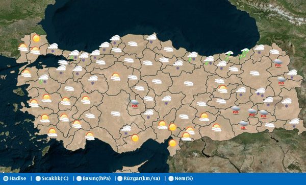 Meteoroloji İşleri Genel Müdürlüğü de yurttaki hava durumunu anlık olarak vererek vatandaşları bilgilendiriyor.
