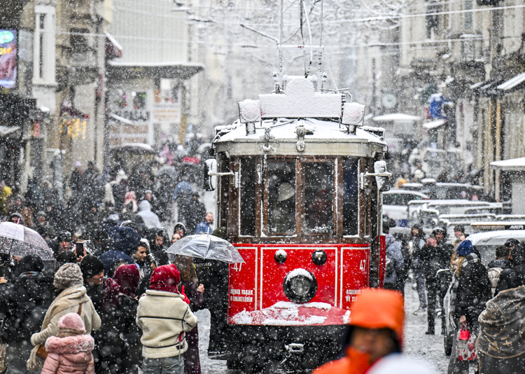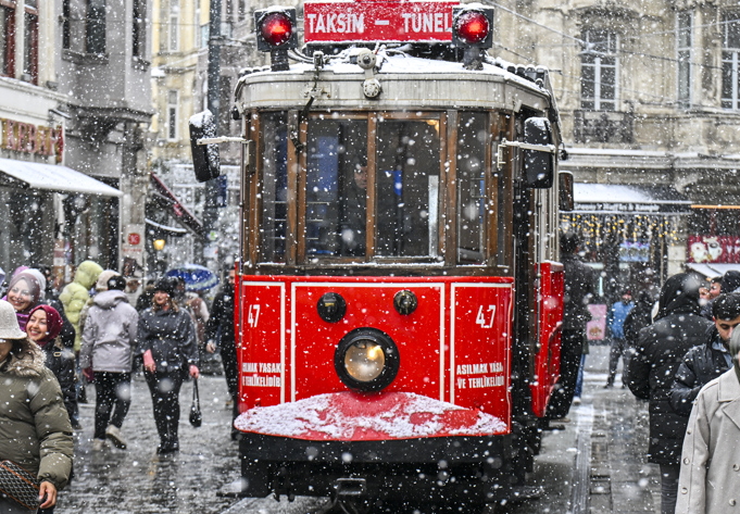 İstanbul’da yeni yılın ilk gününde kar yağışı yer yer etkisini sürdürdü. Kentin en yoğun yaya hareketliliğine sahip noktalarından İstiklal Caddesi ve Taksim Meydanı’nda kar yağışının belirgin hale gelmesiyle birlikte cadde ve çevresinin beyaza büründüğü görüldü.