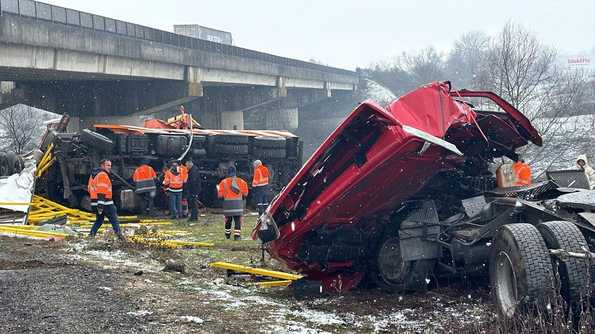 Alınan bilgilere göre, Bayram Gülaçtı'nın kullandığı Karayollarına ait kar küreme aracı, İstanbul istikametine doğru ilerleyen Metin Çakmak'ın kullandığı 74 DE 080 plakalı demir ve sac yüklü tıra arkadan çarptı. Çarpmanın etkisiyle her iki araç da otoyol üzerindeki köprüden devrildi.