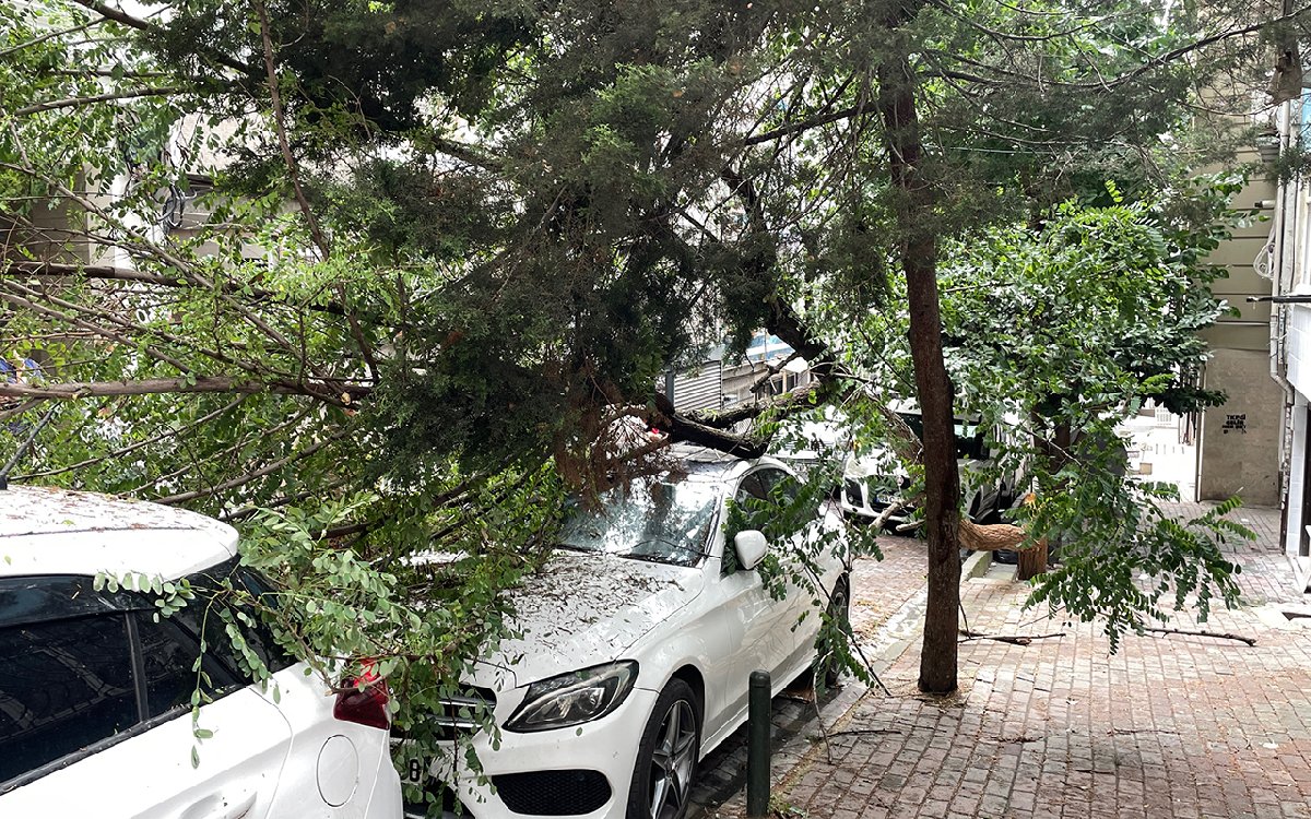 Kılıçali Paşa Mescidi Sokağı'nda bulunan bir ıhlamur ağacı, rüzgarın etkisiyle kökünden kırılarak devrildi.