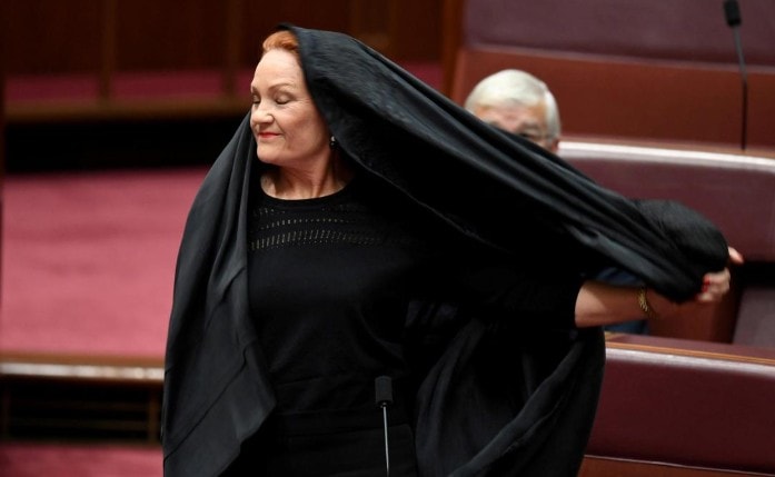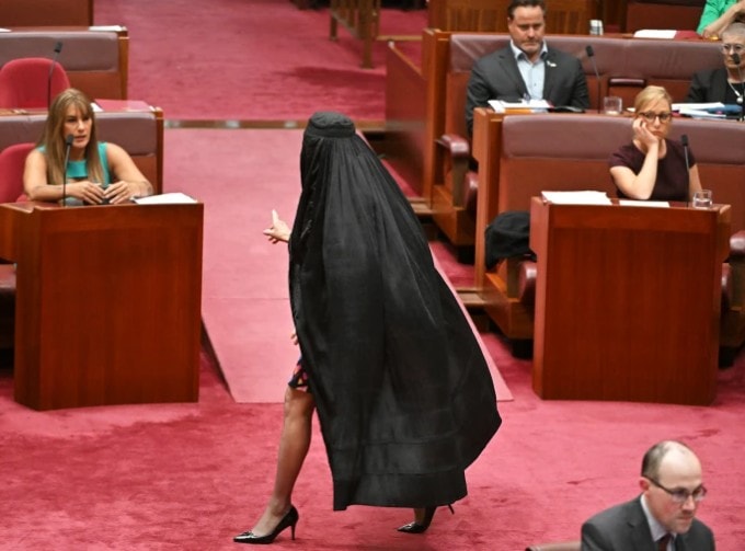 Avustralya'da Tek Ulus Partisi Senatörü Pauline Hanson oturum sırasında çarşafı çıkararak, “Bu çarşafı çıkarmaktan memnuniyet duyuyorum. Parlamentoda çarşafın yeri yok.” dedi.