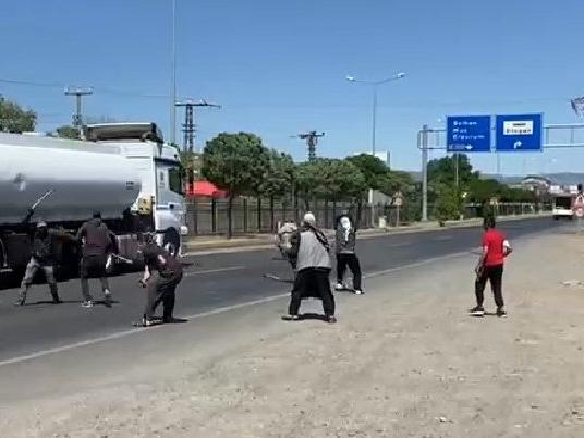 Kara yolunda tehlikeye rağmen sopalı kavga