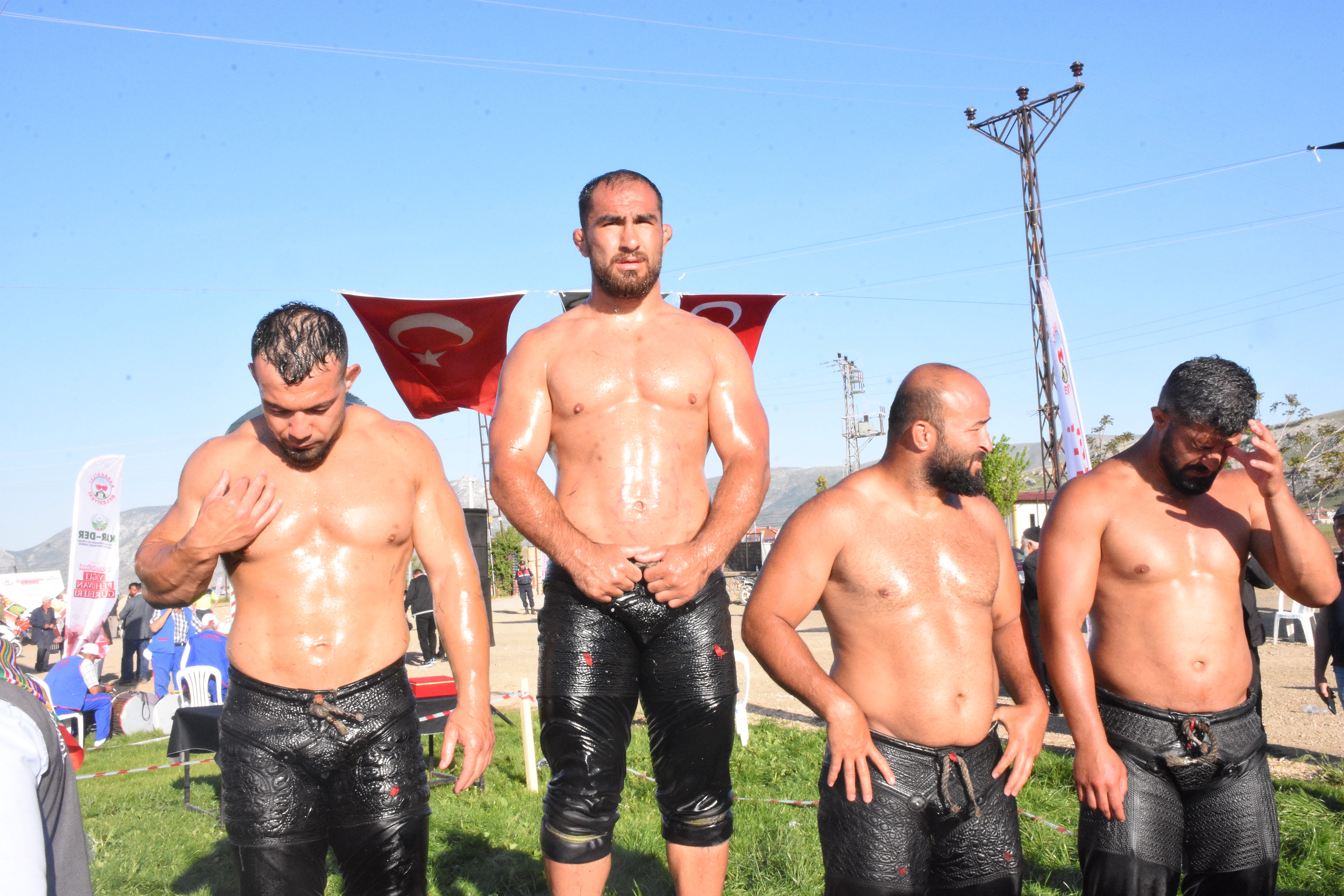 Afyonkarahisar'da Karaadilli Er Meydanı'nda gerçekleştirilen 42. Karaadilli Yağlı Güreşleri'ne, 20'si başpehlivan olmak üzere yaklaşık 300 güreşçi katıldı.