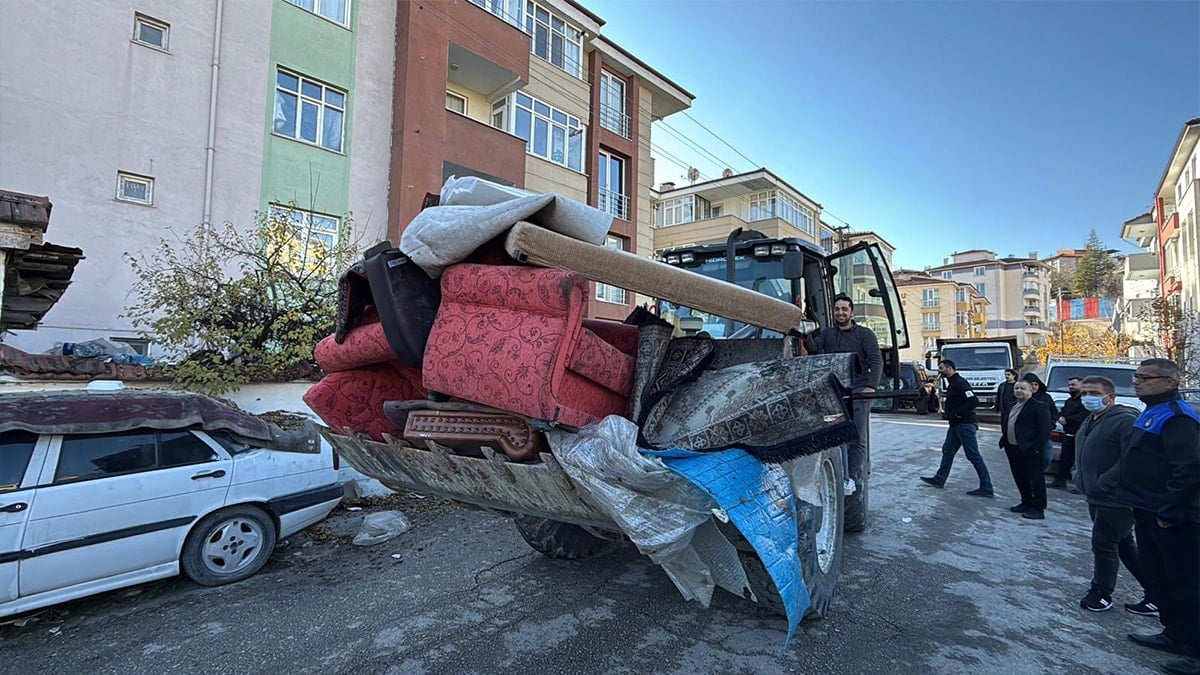 Görsel kirliliğin yanı sıra çevreye yayılan kokudan rahatsız olan bina sakinlerinin şikayeti üzerine, Karabük Belediyesi’ne bağlı Zabıta Müdürlüğü, Temizlik İşleri Müdürlüğü ve polis ekipleri bölgeye geldi. Ekipler, Mustafa T.’nin babası Nuri T. ile birlikte evdeki çöpleri dışarı çıkartarak iş makinesiyle kamyona yükledi.