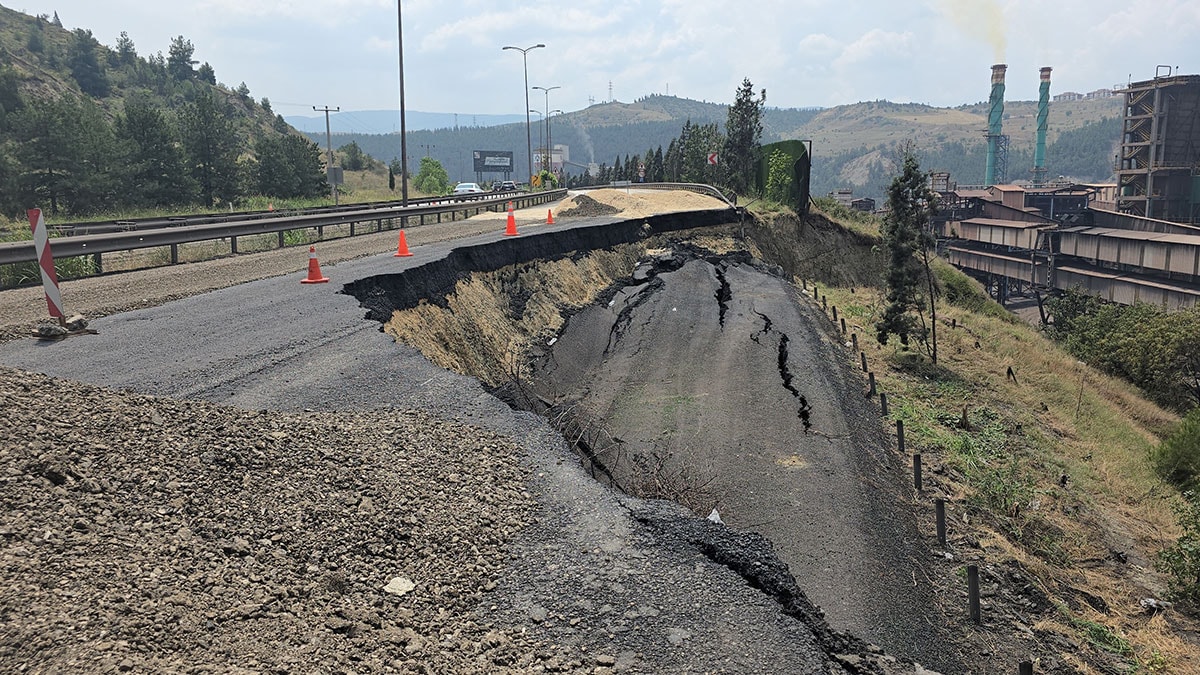 Öte yandan, yolun çökmesinden etkilenen bölgedeki demir yolu da ulaşıma kapatıldı.