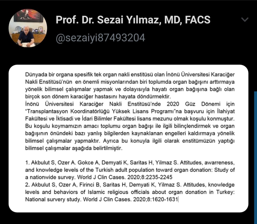 Konuyla ilgili açıklama yapan İnönü Üniversitesi Karaciğer Nakli Enstitüsü müdürü Prof. Dr. Sezai Yılmaz şu ifadeleri kullandı: