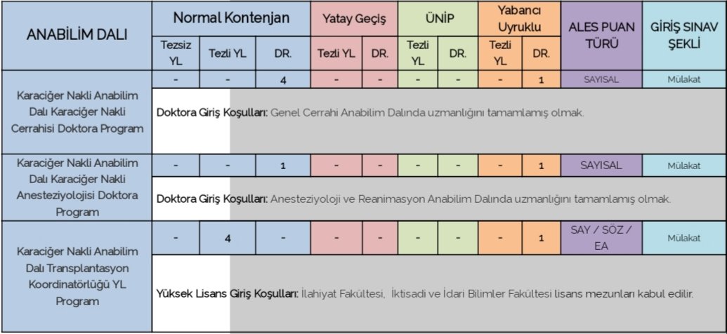 Karaciğer Nakli Anabilim Dalı Transplantasyon Koordinatörlüğü Yüksek Lisans Programı için İktisadi ve İdari Bilimler Fakültesi lisans mezunları ile birlikte konuyla hiç ilgisi olmamasına rağmen ‘ilahiyat fakültesi mezunu olma’ şartının arandığı bildirildi.