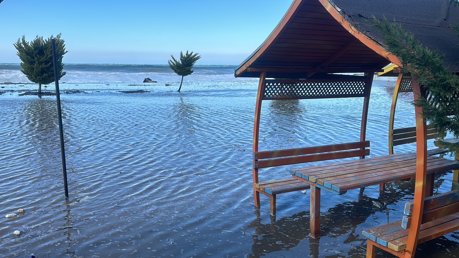 Sahil şeridindeki Açıkspor Tesisleri ve çocuk oyun alanları da dalgaların taşıdığı kum ve taş yığınlarıyla doldu.