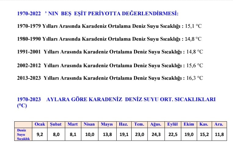 -Karadeniz'de genellikle deniz suyu sıcaklığı bizim bölgemiz için konuşacak olan 7 derece ile 25 derece arasında genelde değişiyor ama bu yıllar son yıllarda 27-28 dereceye kadar çıkıyor. Şimdi bunun anlamı şu; bizim coğrafyada yaşayan organizmaların tamamı mikroorganizmalardan balık ve diğer köpekbalığına kadar giden türlerin tamamında bu sıcaklığa dayanabilen türler.
