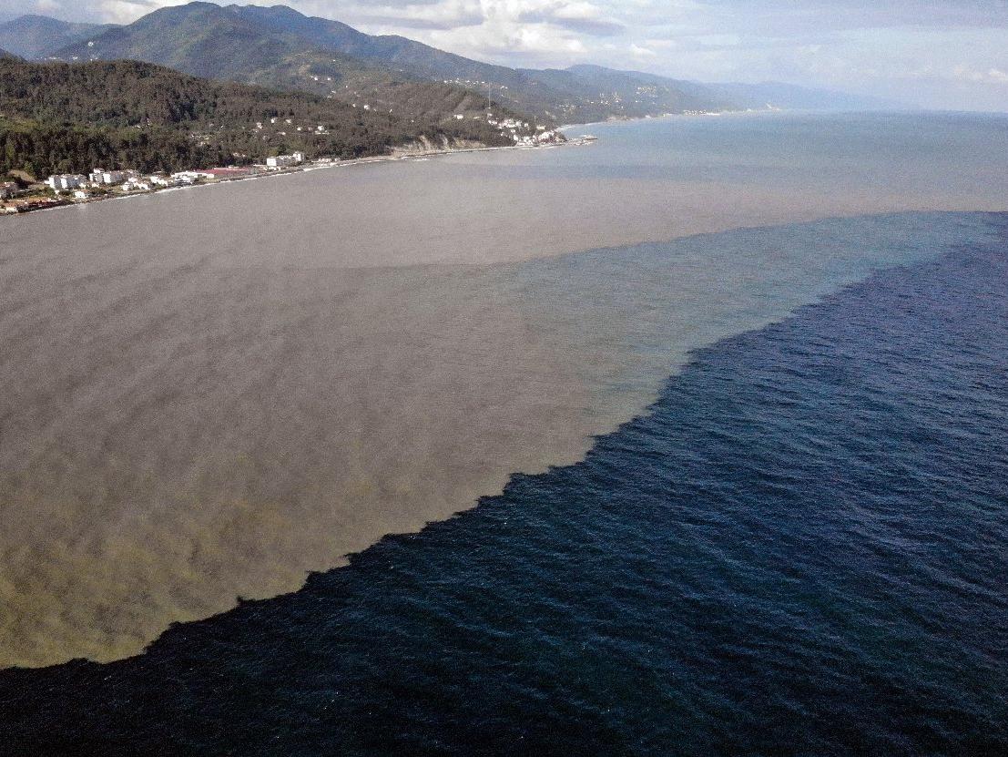 Karadeniz'e akan çamur sebebiyle, adeta deniz iki renge büründü.