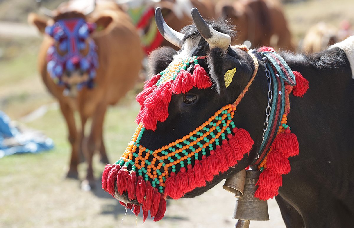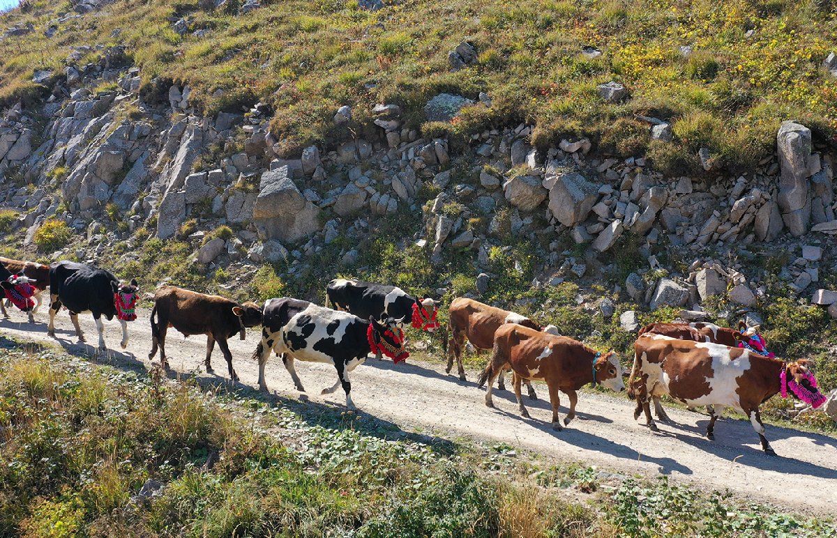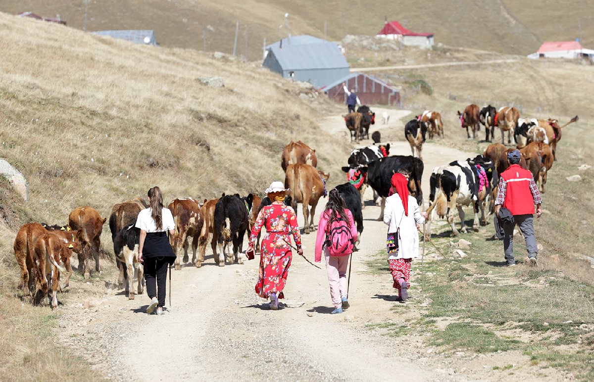 Gümüşhane-Trabzon sınırındaki Bodamış Yaylası'na yaz başında çıkan besiciler, 4 aylık yayla sezonunun sonuna geldi, hayvanlarını süsleyerek dönüş yolculuğuna başladı.