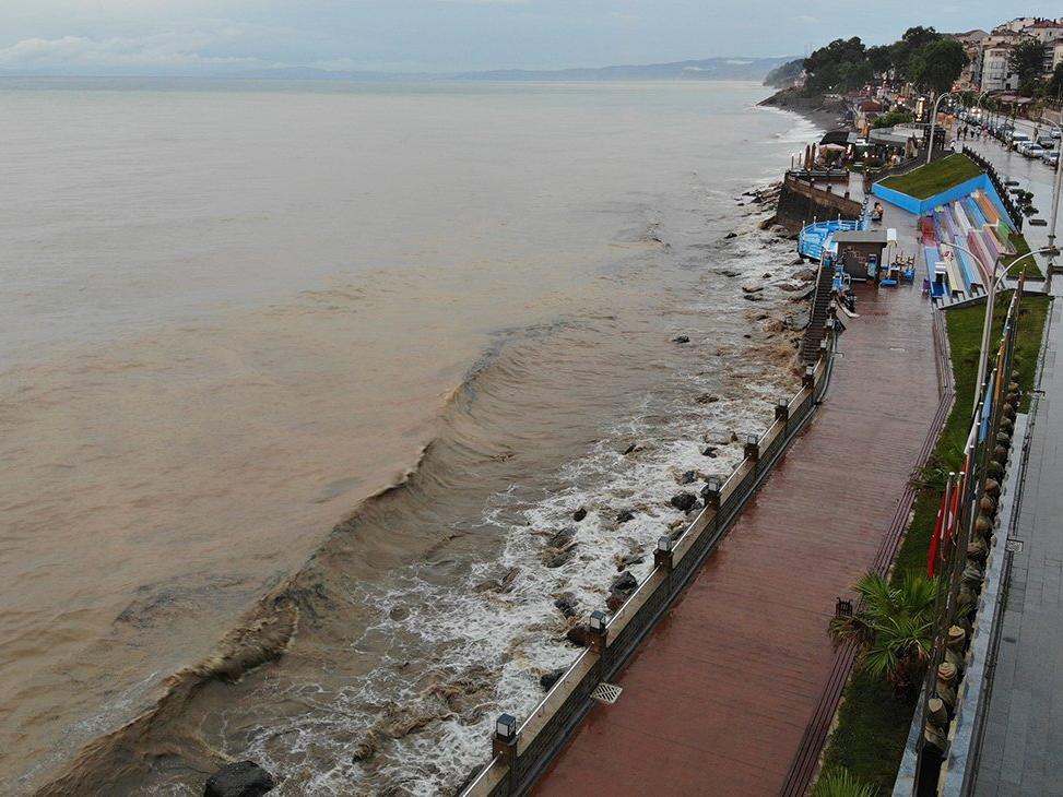 Limanda oluşan çamur rengi havadan görüntülendi. Çuhallı plajında da sahil kenarındaki 300 metrelik alan kahverengiye dönüştü. İHA