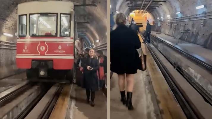Karaköy tünel hattındaki teknik arıza nedeniyle yolcuların durağa yürümesi görüntülendi