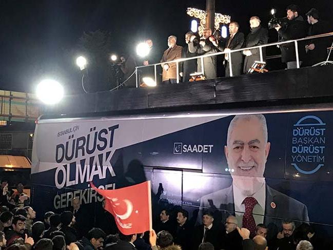 "Allah sizden razı olsun, sizi destekliyoruz' diyorlar ama geçen dönem olduğu gibi bu sevgi sandığa yansımadı. Şimdi sizden dileğimiz şu: seçim sevgiyle değil, bağlılıkla değil sandıkta kazanılıyor. Artık eski safdillik kalktı gibi gözüküyor. İnsanlarımız, ben bile söylemeden 'Sizinle beraberiz, sizi sandıkta destekleyeceğiz' diyorlar. 31 Mart ülkemizin Saadet'e olan güveninin sandığa yansıdığı gün olacak" dedi. DHA