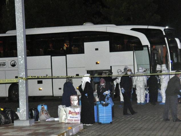 DHATahliye edilenlerden 62 kişi ise memleketleri Karaman'a ulaştı. Şehirlerarası otobüs terminaline getirilen 62 kişi, otobüslerden indirilmeden önce sağlık görevlileri tarafından ateşleri ölçülüp, sağlık kontrolleri yapıldı.