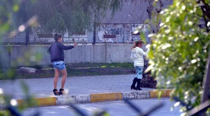 Dikkat çekici dekolte giyimleri ve aşırı makyajları ile yoldan geçen araçlara el kaldırıp, duran sürücülerle pazarlık yapan kadınlar, görüntülendiklerini anlayınca yüzlerini gizledi. Çevre esnafının ihbarı üzerine bölgeye gelen polis ekiplerini görünce kaçan kadınlar, polisler gidince dönerek otostop yapmayı sürdürdü.