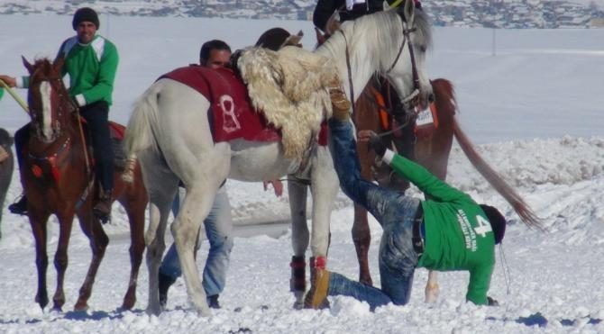KARS’ın Sarıkamış İlçesi Cıbıltepe Kayak Merkezi’nde bu yıl 4'üncü düzenlenen, 'Sarıkamış Kış Oyunları Festivali’nde ilk kez gösteri yapan atlı ciritciler izleyicileri heyecanlandırdı. Atların zaman zaman izleyiciler arasına daldığı gösteride, bir atın çarptığı kadın hafif yaralandı.
