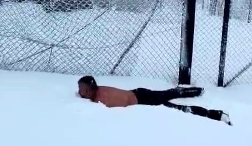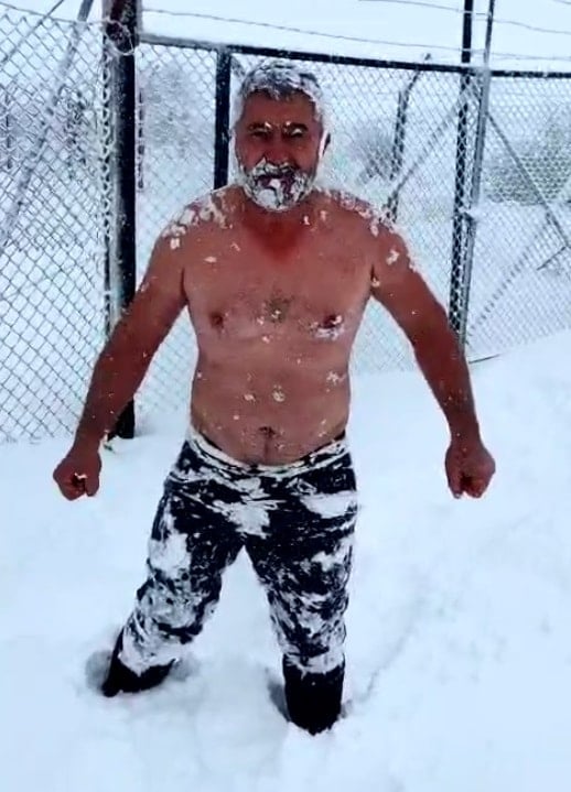 Zorlu engelleri aşan grup üyelerinden biri, aracını durdurduktan sonra üzerindeki kıyafetleri çıkararak kendisini karların üzerine bıraktı. Soğuğun etkisini karın üzerinde uzanarak ve kar banyosu yaparak karşılayan vatandaşın o anları, arkadaşları tarafından cep telefonu kameralarıyla anbean kayıt altına alındı.