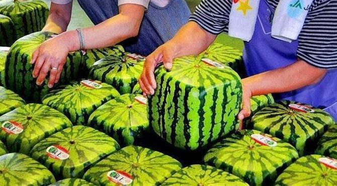 CNN deki bir röportajda son günlerde Güney japonya’ daki Zentsuji kasabasındaki çiftçilerin karpuzların büyürken kare şeklinde olmasını sağlayacak bir teknik geliştirdiklerini belirttiler.