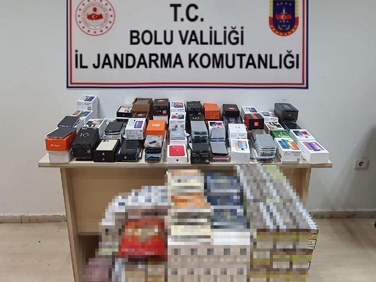 Bolu’da jandarma ekiplerinin kargo aracına yaptıkları operasyonda binlerce adet tütün ürünü ve kaçak cep telefonu ele geçirildi.