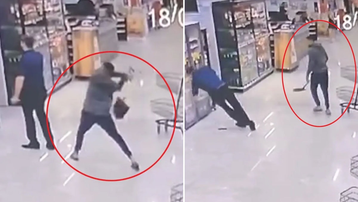 Öfkeli eş, karısını 'azarladığı' iddiasıyla intikam almak için süpermarket müdürünü hedef aldı. Güvenlik kamerası görüntülerinde 29 yaşındaki adamın, marketteki bahçe ekipmanlarını inceleyip, ardından bir kürek alarak market müdürüne saldırdığı görüldü.