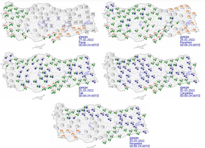 Meteoroloji Genel Müdürlüğü tarafından yapılan son değerlendirmelere göre: Ülkemiz genelinin parçalı ve çok bulutlu, Marmara, Ege, Batı Akdeniz, İç Anadolu'nun kuzeybatısı ve Batı Karadeniz ile Adana, Osmaniye, Hatay, Samsun, Çorum, Amasya, Rize ve Artvin kıyılarının yağışlı geçeceği tahmin ediliyor.