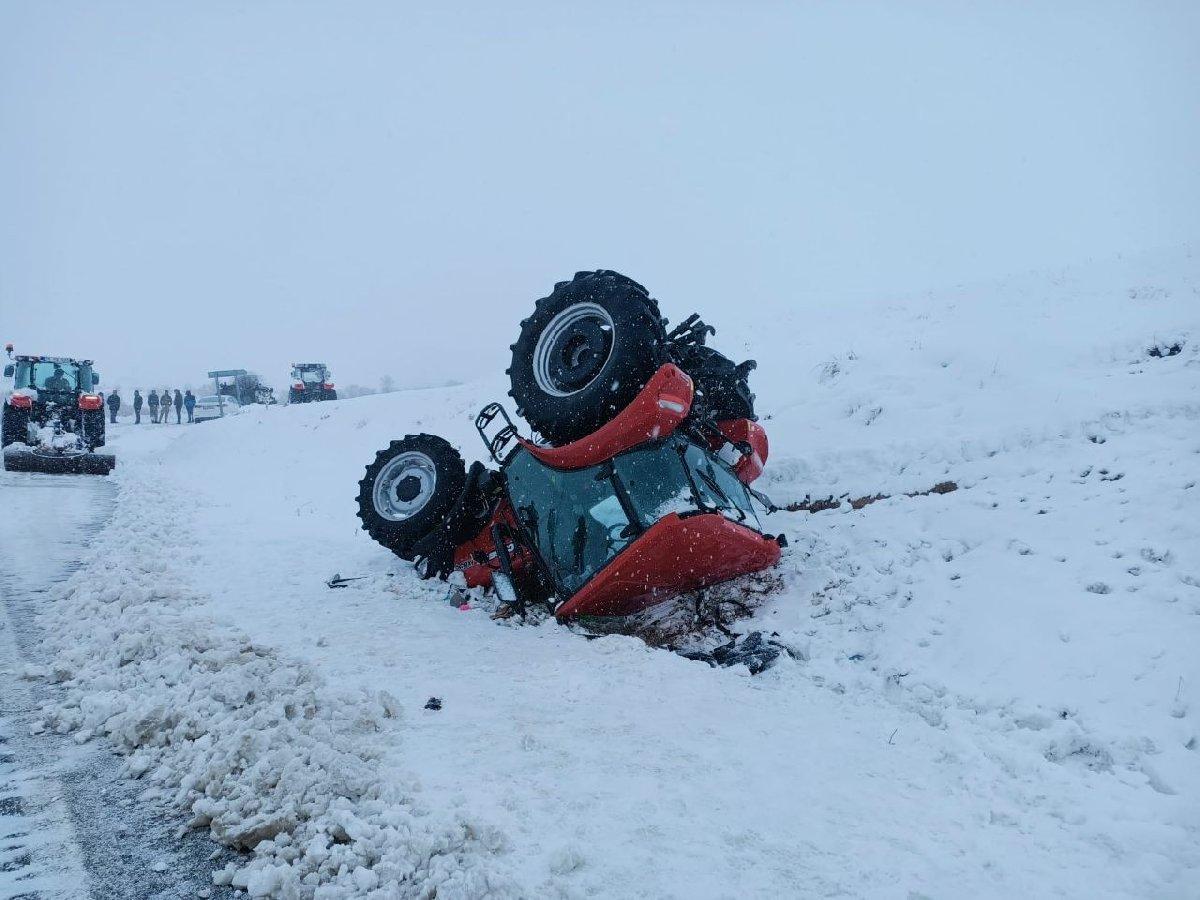 Karlı yolda öğrencileri taşıyan traktör devrildi: 1 ölü, 2 yaralı
