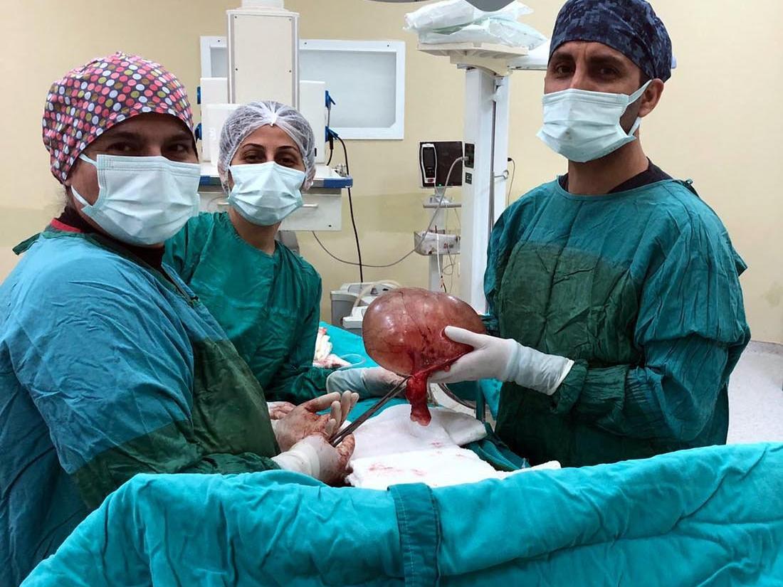 Turgutlu devlet Hastanesi Başhekimi Op. Dr. Murat Özşahin ise, "Hastamız 10- 15 gün önce bize başvurdu, nefes darlığı vardı. Kitle olduğu kendisine söylenmiş. Celal Bayar Üniversitesi Hastanesi'ne yönlendirilmiş. Yoğunluktan dolayı orada ameliyatı yapılmadan bir şekilde bize ulaştı. Filmlerine baktık, tetkikler istedik. İyi huylu kiste benziyordu. Bu amaçla ameliyatımızı planladık. 1,5- 2 saatlik ameliyatla teyzemizin kistini çıkardık. Onun beraberinde 'sıkıntı çıkarmasın' diye rahmini de aldık. Teyzemiz rahatladı, nefes darlığı geçti. Ağrıları da yok. Kendisini taburcu edeceğiz. Buradan çıkacak sonuç; küçük bir kist olsa bile hemen kadın doğum doktoruna gidin, ertelemeyin, tedavisini yaptırın. Beklemeyin, beklerseniz, kist büyür, ameliyat zorlaşır, kanser riski artar. Kadın doğum kontrollerimizi aksatmayalım. Belli bir noktaya gelince işler zorlaşıyor. Kist bulunduğu mutlaka takip ettirsinler" diye konuştu. (DHA)