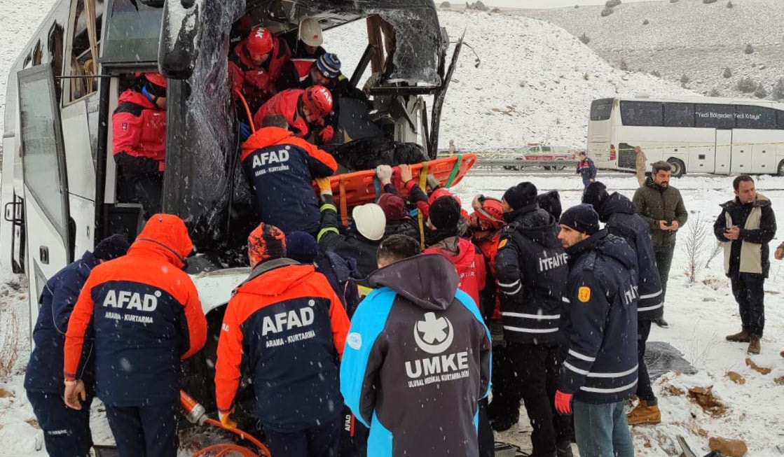 Bir başka yolcu otobüsü de kayarak önündeki otobüse çarptı. İhbar üzerine bölgeye AFAD, jandarma, itfaiye ve sağlık ekipleri sevk edildi. Araçta sıkışan otobüs şoförü, ekipler tarafından kurtarıldı.