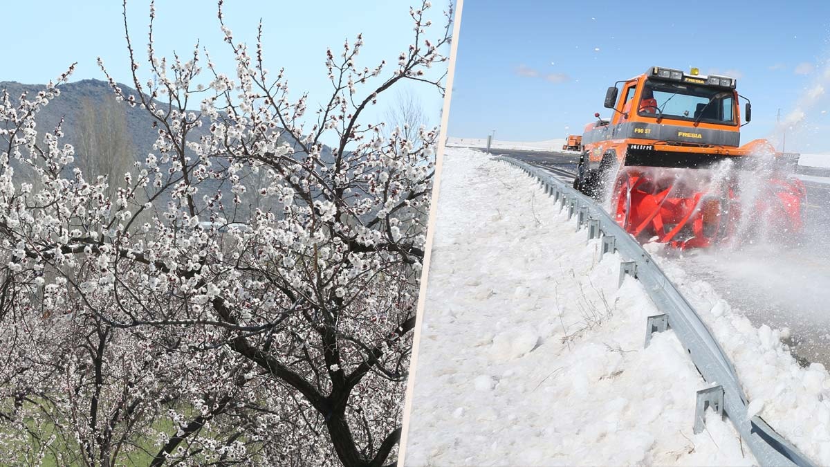 Kars'ın yüksek rakımlarında kara kış yaşanırken Digor ilçesine bağlı, kar küreme çalışmasının yapıldığı alandan yaklaşık 40 kilometre uzaklıktaki 1276 rakımlı Halıkışla köyünde ise bahar yaşanıyor.