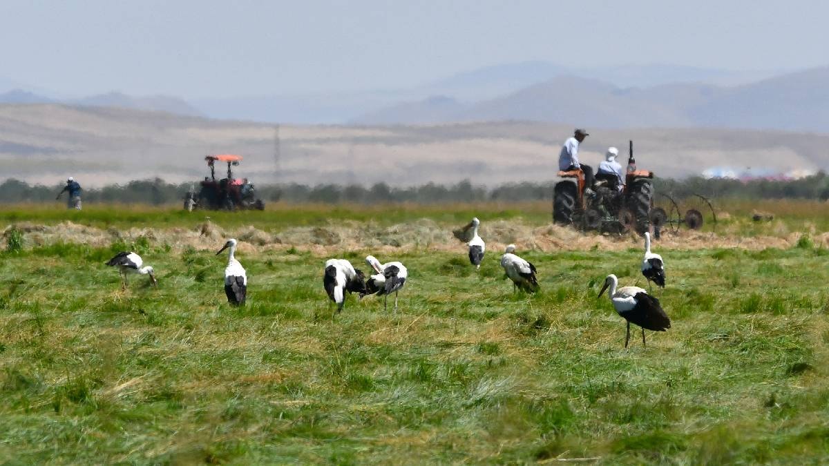 Çiftçi Görkem Ekinci, her yıl hasat döneminde leyleklerin sayısında artış yaşandığını belirterek, “Otların biçimine başladık. Leylekler özellikle kurbağa ve yavrularıyla besleniyor. Temmuz-ağustos aylarında çayırlarda sıkça görüyoruz. Kasım ayında ise göç ediyorlar” dedi.