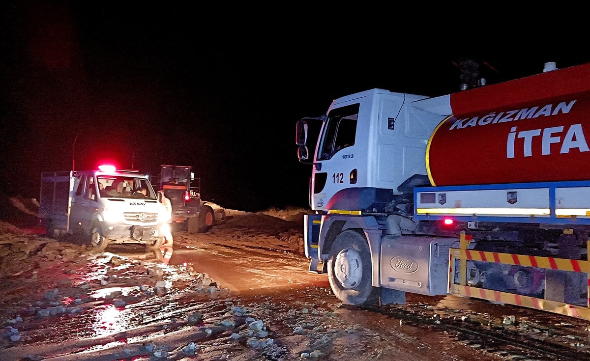 Sel bölgesine çok sayıda iş makinesi gönderilirken, ekipler dün akşam üzeri kapanan Kağızman-Iğdır kara yolunun ulaşıma açılması için çalışmasını sürdürüyor. Burada sel nedeniyle mahsur kalan 11 araç ise ekiplerce kurtarıldı.