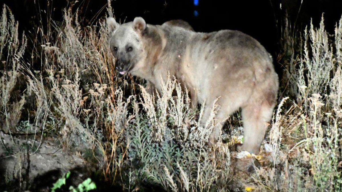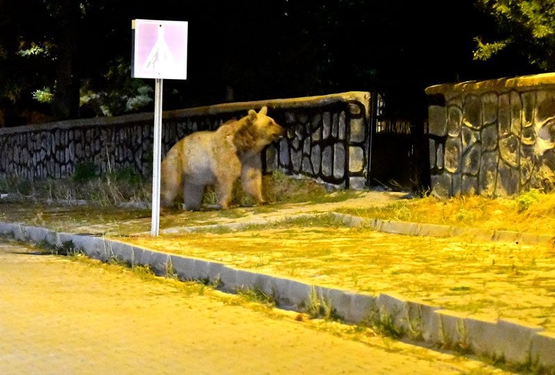 Bozayı, mahalledeki caddelerde dolaştıktan sonra duvarların üzerinde gezindi. Ardından bir çöp yığınında plastik kapta bulunan yoğurdu yedi.