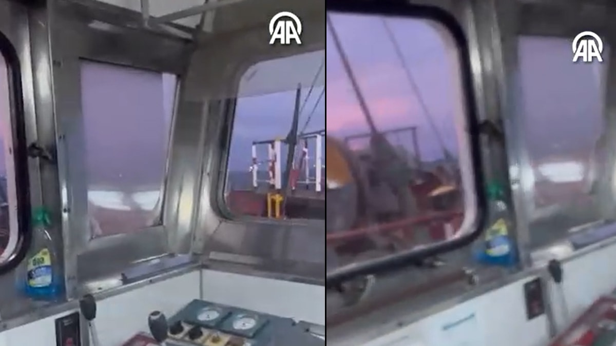 Görüntülerde, gemi personelinin kendilerine yaklaşan diğer gemiyi gördüklerindeki panik halleri ve iki geminin birbirine sürtmesi yer aldı.