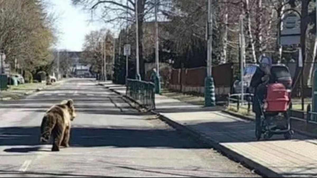 Avrupa'nın sakin ülkelerinden Slovakya'daki Liptovsky Mikulas kasabasına inen bir ayı bölgede panik yarattı...