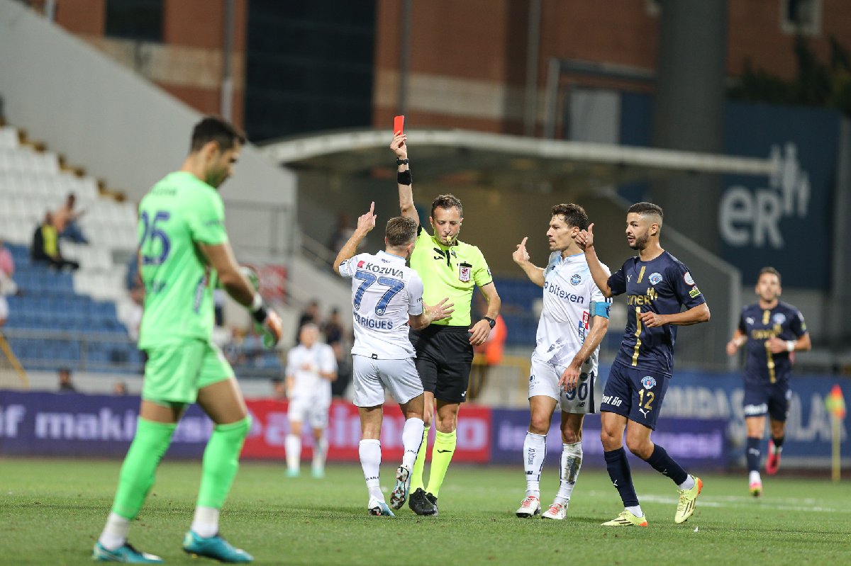 Adana Demirspor'da Kevin Rodrigues, maçın son anları oynanırken sarı kart gördü. Son düdüğü çalan hakem Yasin Kol, Video Yardımcı Hakem (VAR) uyarısı sonrası kırmızı kart gören üçüncü futbolcu oldu.