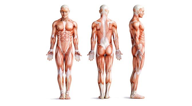 Eğer zayıf bir erkekseniz, vücudunuzun ortalama yüzde 45’i kas, 15’i kemik ve diğer yüzde 15’i de yağdan oluşur. Eğer zayıf bir kadınsanız vücudunuzun yaklaşık yüzde 30’u kas, 12’si kemik ve 30’u yağdan oluşur. Diğer yüzde 25’lik kısım ise organlarınızın ağırlığıdır.