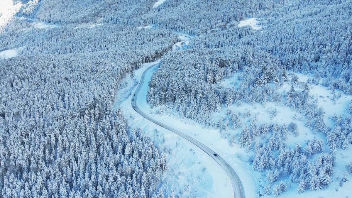 Beyaza bürünen Kastamonu ormanları dron görüntülerine yansıdı.