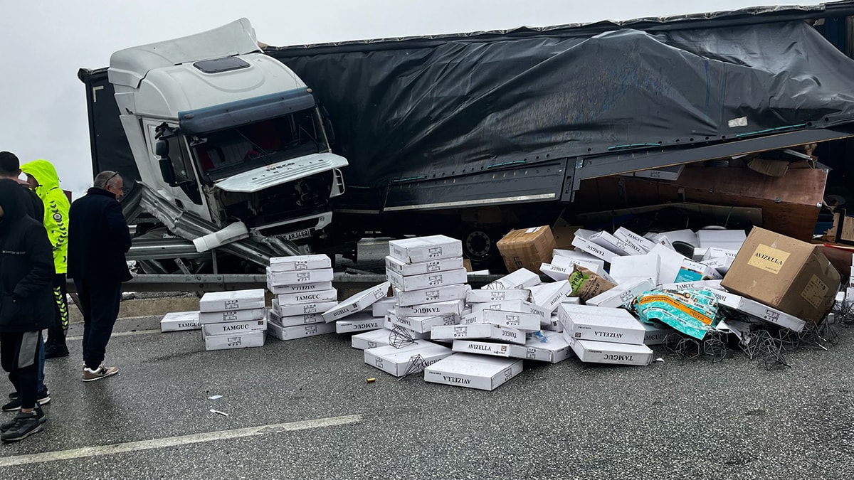Polis ekipleri, TIR vinçle kaldırılana kadar İstanbul-Samsun kara yolunun her iki yönünü kapattı. Sürücüleri alternatif yollara yönlendirdi. Trafik polisinin yönlendirmesini fark edemeyen sürücünün kullandığı hafif ticari araç, polis otosuna çarptı. Kazada hasar meydana geldi.