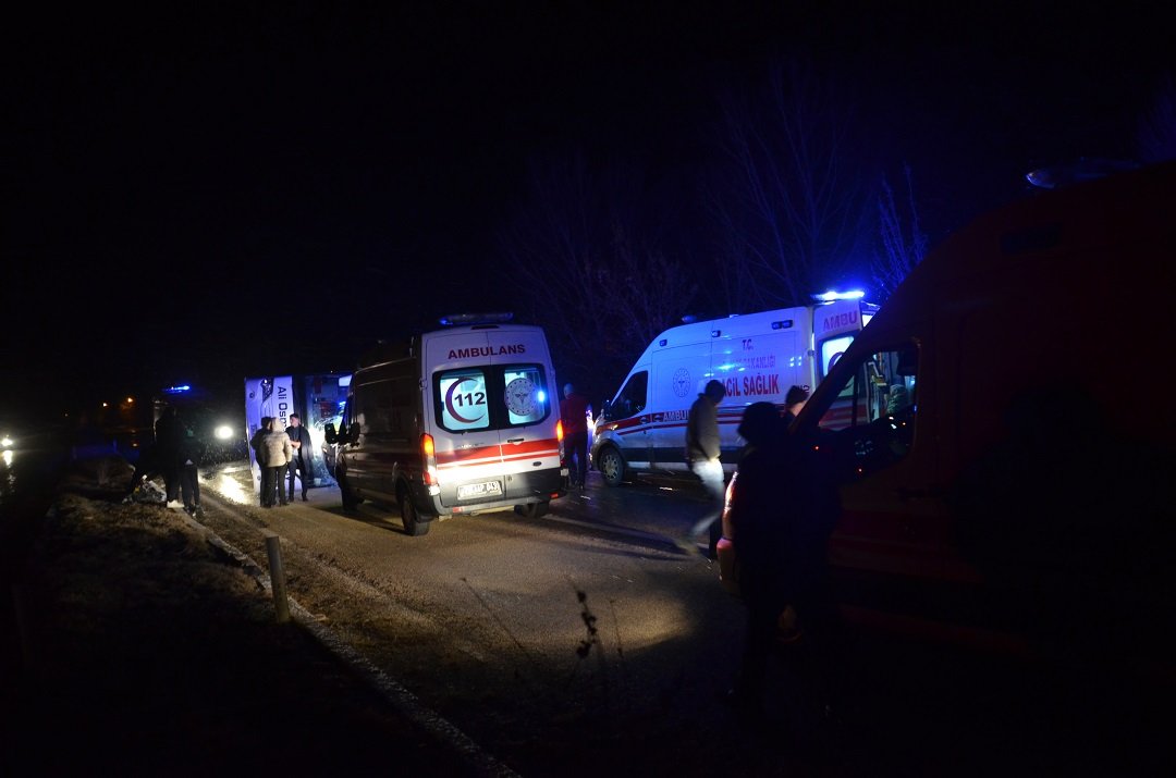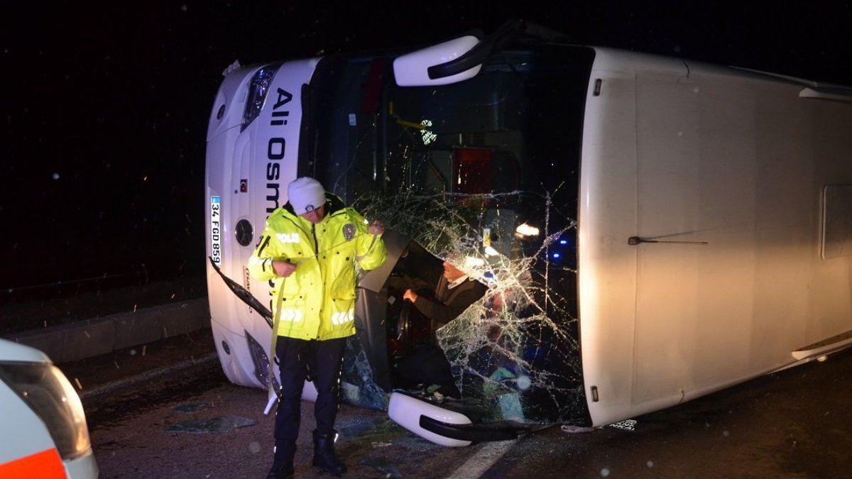 Metrelerce sürüklenen otobüste can pazarı yaşandı. Çevredeki sürücülerin ihbarıyla olay yerine jandarma ve çok sayıda sağlık ekipleri sevk edildi. Ters istikamette devrilen otobüsün yeni bir kazaya neden olmaması için jandarma ekipleri yolda önlem aldı. Sağlık ekiplerinin yaptığı kontrolde otobüste bulunan 30 kişinin yaralandığı belirlendi.